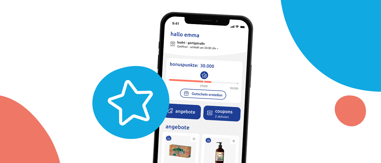 Ab 25.000 Bonuspunkten kannst Du diese in der App in einen Gutschein umwandeln. Bei 50.000 Bonuspunkten erhältst Du automatisch einen 5 €-Gutschein in der budni-App, mit dem Du beim nächsten Einkauf sparen kannst.