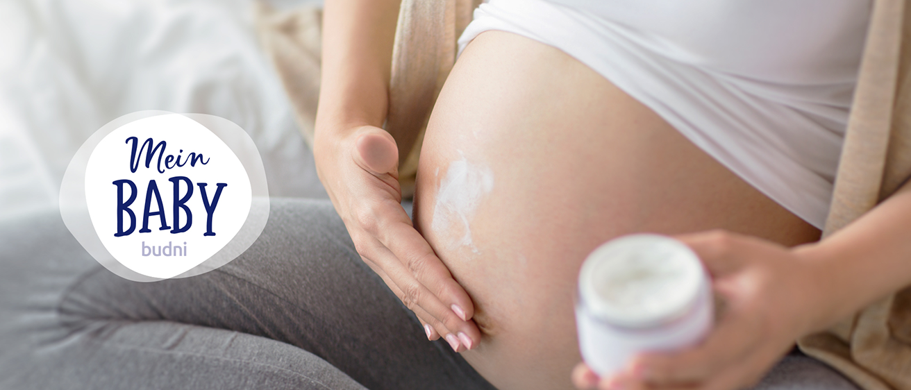 Creme Dir abends vorm Zubettgehen den Bauch mit einem speziellen Pflegeöl ein. Ein gutes Öl gegen Dehnungsstreifen enthält z. B. straffendes Jojobaöl, feuchtigkeitsspendendes Mandelöl sowie Lavendel- und Rosmarinöle, die die Durchblutung anregen (eine Auswahl an Pflegeölen findest Du bei budni). Noch angenehmer wird es, wenn Dein Partner oder Deine Partnerin das Ölen übernimmt – eine schöne Gelegenheit für ihn oder sie, um dem Baby im Bauch nah zu sein, aber auch ein inniger Moment für Euch beide. Wer schon Kleinkinder hat, kann sie auch mit einbinden. Denn bestimmt genießen die Kleinen es, Dir und dadurch auch dem Baby etwas Gutes tun zu können. Und selbst, wenn nach der Geburt doch der ein oder andere Streifen auftaucht: Um das schöne Ritual zu genießen, Spannungsgefühle zu mindern und insgesamt zur Ruhe zu kommen, hat es sich das regelmäßige Cremen doch gelohnt.