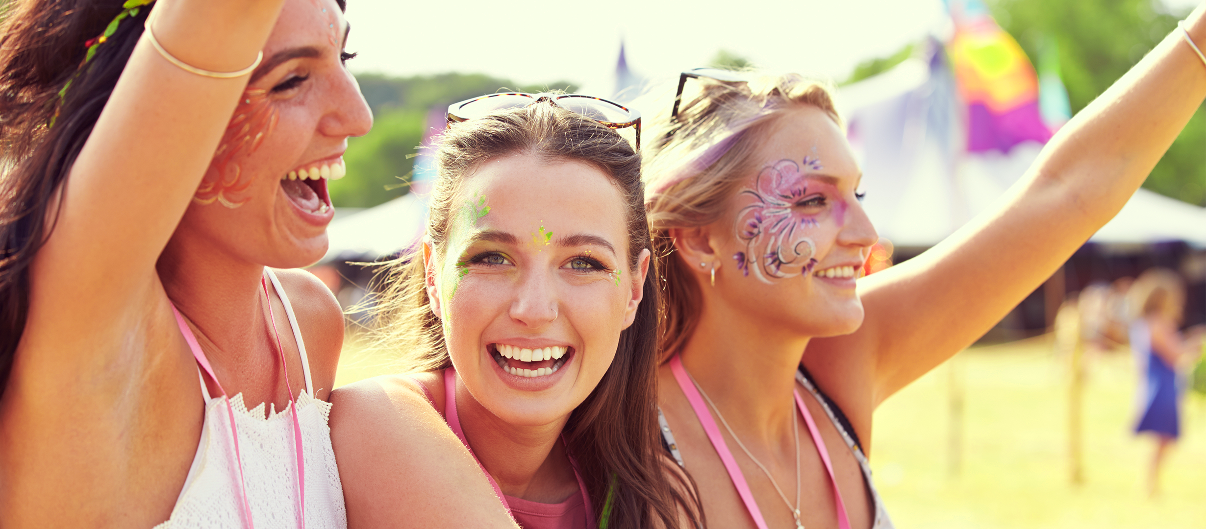 Das Schöne an Festivals sind nicht nur die Musik und das Zusammensein, sondern auch die Freiheit, bei Make-up & Co. aus dem Vollen zu schöpfen. Alles kann, nichts muss. Wenn Du Lust auf Glitzer im Gesicht hast – go for it! Bunte Nägel, knallige Lippen, farbenfrohe Patches – style Dich, wie es Dir gefällt und womit Du Dich wohlfühlst!