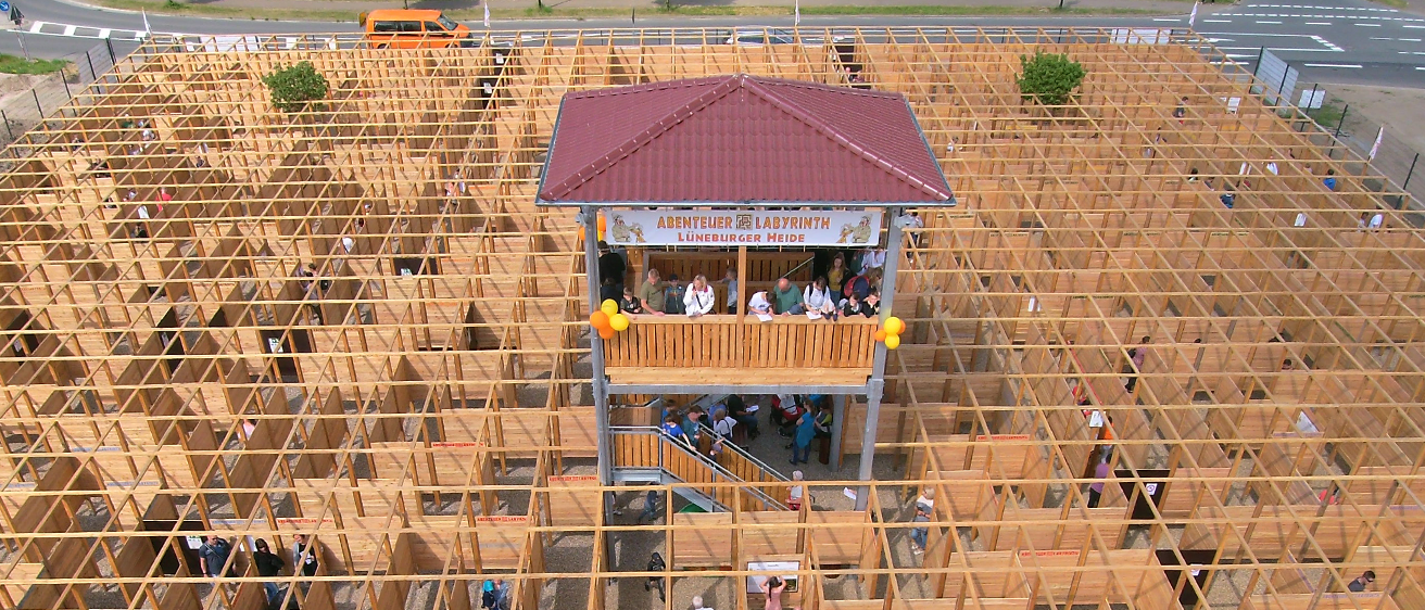 Am 11.5.2018 eröffnete das 2800 Quadratmeter große, wandelbare „Abenteuerlabyrinth Lüneburger Heide“ in Bispingen. Das Labyrinth, ganz genau genommen ist es ein Irrgarten, besteht aus einem Holzstecksystem, welches jederzeit umgebaut und somit auch immer wieder neu gestaltet werden kann.