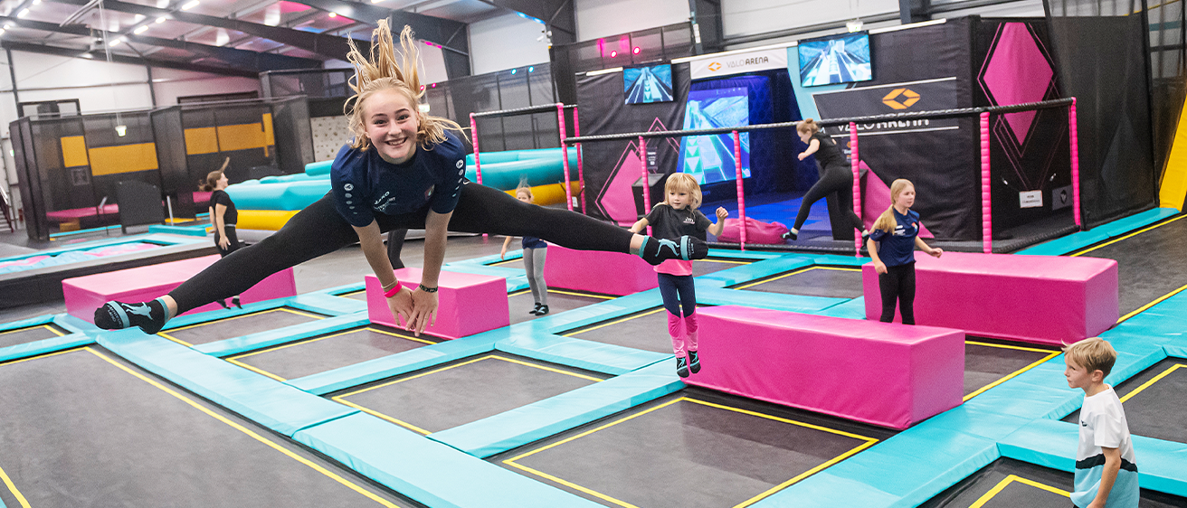 Freizeitspaß für die ganze Familie! Erlebt Euer sportlichstes und einzigartiges Abenteuer. Hüpft im modernsten Trampolinpark Deutschlands, erklimmt neue Höhen auf unserer großen Kletterwand oder im Hochseilgarten, testet Euer Können auf dem Ninja Parcours oder spielt im Kindertobeland!