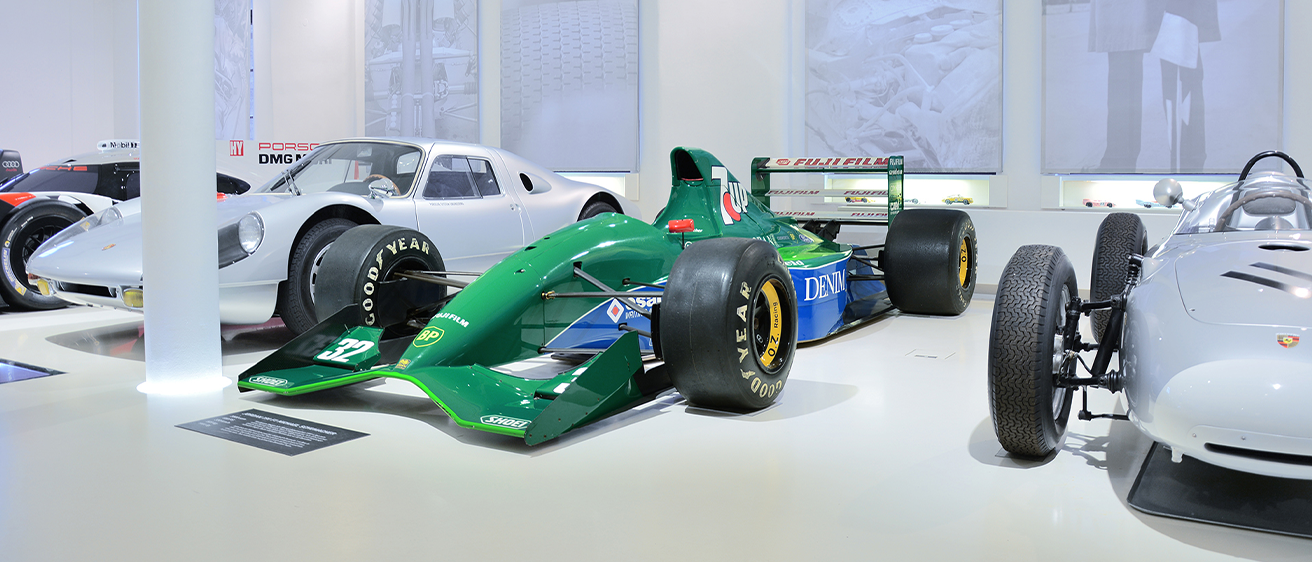 Rund 50 seltene Sport- und Rennwagen zeigen hier Automobil-Faszination in den unterschiedlichsten Facetten: von frühen Porsche-Konstruktionen wie dem legendären Porsche-Urahn Typ 64 (Bj. 1939) über italienische Sportwagenklassiker bis hin zum Jordan F1 191 (Bj. 1991), mit dem Michael Schumacher sein erstes Formel-1-Rennen fuhr. Auch das Leben der legendären Rennfahrer und genialen Konstrukteure wird mit viel Liebe zum Detail in Szene gesetzt. Der Porsche 356-Fahrsimulator, das Museumskino, der Modell-Windkanal und die Audio-Box mit ca. 20 individuell wählbaren Motoren-Sounds sowie wechselnde Sonderausstellungen und das Museumscafé sind weitere Highlights, die es auf ca. 2.500 qm zu entdecken gibt.
