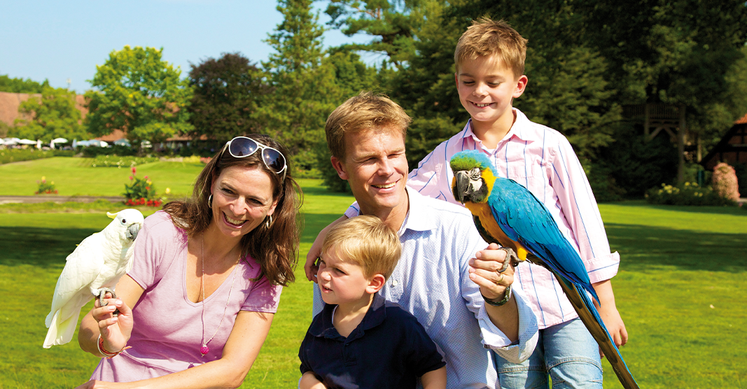 Im weltweit größten Vogelpark hast Du die Gelegenheit, auf über 24 Hektar tausende gefiederte Stars kennenzulernen. Begegne vielen Exoten aus der Vogelwelt hautnah – erlebe den Freiflug in der Paradieshalle, fische mit Pinguinen und Pelikanen und gehe in der Uhu-Burg auf Erkundungstour durch die mystische Welt der Eulen. In der 3.000 m² großen Freiflughalle bist Du mittendrin im Geschehen und erlebst Vögel im freien Flug. Gehe auf Tuchfühlung mit den bunten Loris in der australischen Erlebnislandschaft „Toowoomba“ und füttere diese mit Nektar. Im Pukara kannst Du Dir während der Arassari-Fütterung die ein oder andere Blaubeere aus der Hand stibitzen lassen.