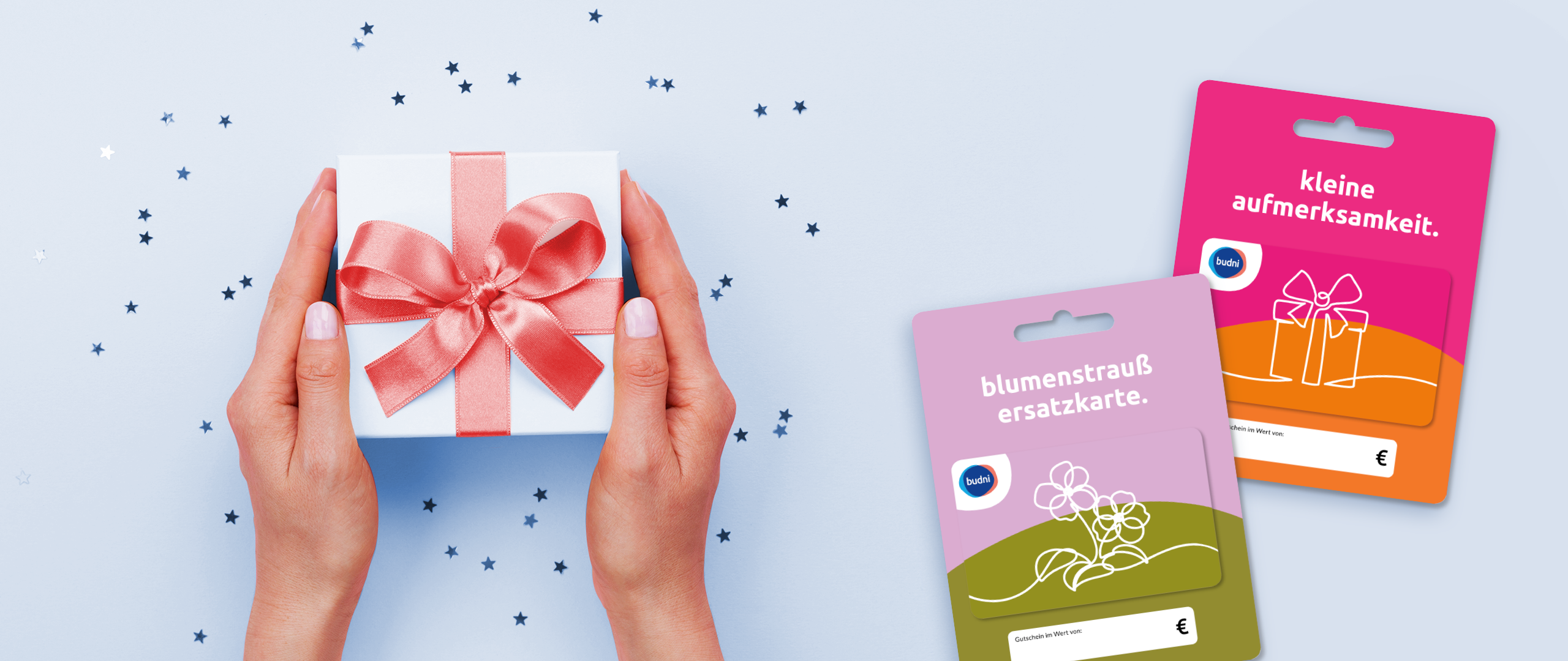 Immer eine gute Idee: Mit der Gutscheinkarte von budni hast Du immer das passende Geschenk zur Hand – ob für Geburtstage, Feiertage oder einfach als kleine Aufmerksamkeit zwischendurch. Dank der großen Auswahl an Produkten rund um Pflege, Haushalt, Gesundheit und Lifestyle ist für jeden Geschmack etwas dabei. Und das Beste: Die Karte ist das ganze Jahr über einlösbar – ganz nach Deinem Wunsch, ganz nach Deinem Moment.