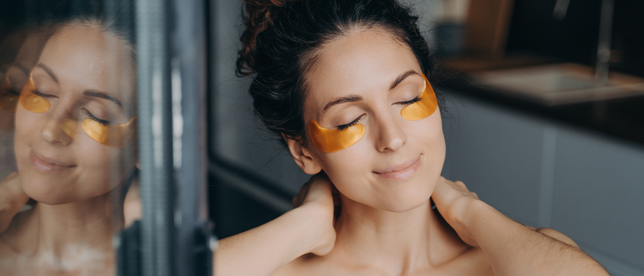 - Augenpartie: Kühlende Gelformen oder Augenpads mit Gurke oder Koffein beruhigen und geben Dir einen zusätzlichen Frischekick.