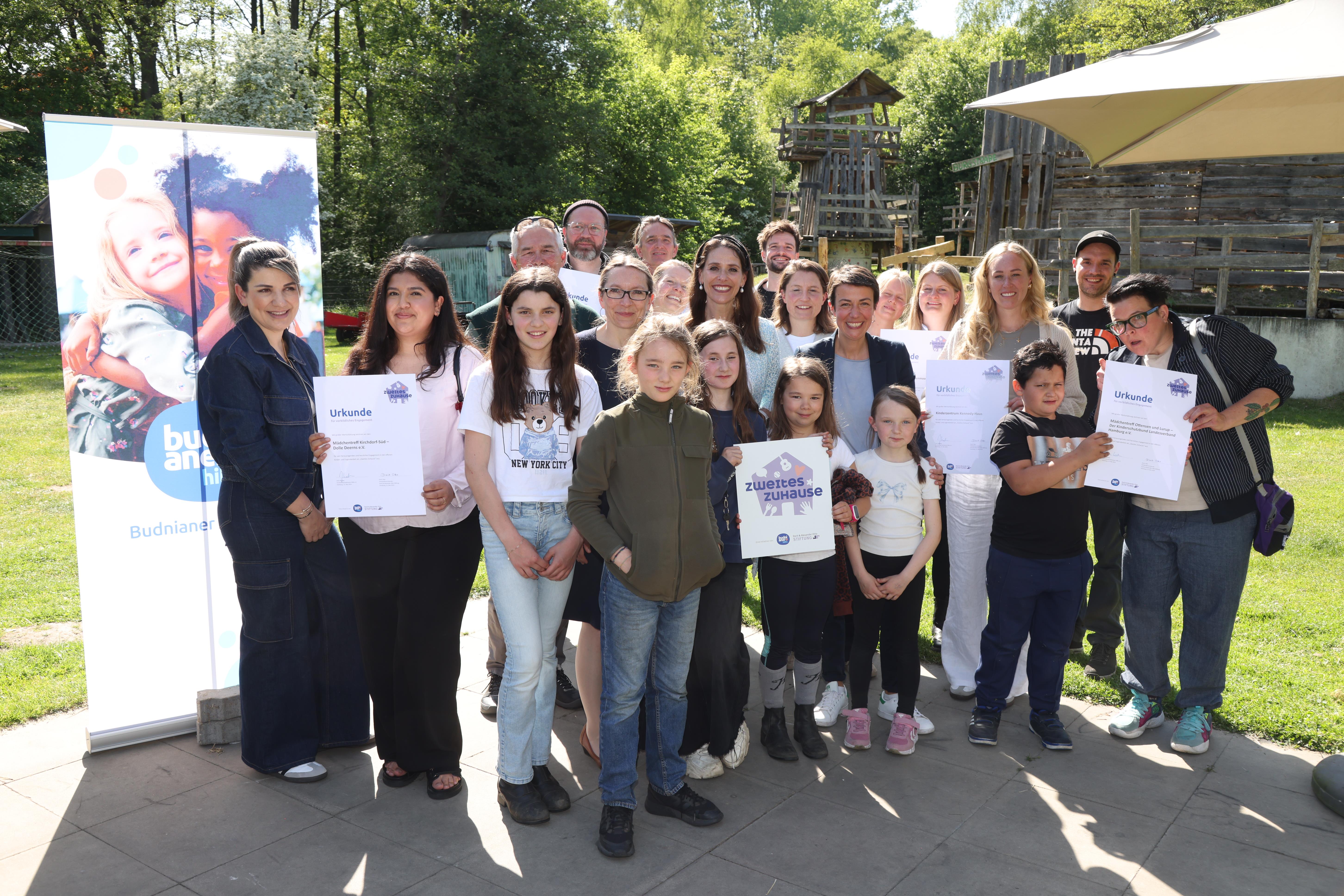 Bereits seit 2017 fördert die Budnianer Hilfe gezielt Einrichtungen in allen Hamburger Bezirken, die jungen Menschen aus oft schwierigen Lebensverhältnissen einen Ort zum Aufwachsen, Lernen und zur Persönlichkeitsentwicklung ermöglichen und damit ein „Zweites Zuhause“ geben. Heute zeichneten Julia Wöhlke, Vorsitzende des Budnianer Hilfe e.V., und Dorit Otto, Vorstandsvorsitzende der Dorit & Alexander Otto Stiftung, im Beisein von Ksenija Bekeris, Senatorin für Schule und Berufsbildung, sechs Hamburger Einrichtungen der offenen Kinder- und Jugendarbeit als „Zweites Zuhause“ aus. Die Auszeichnungen sind mit der Förderung von jeweils 15.000 Euro pro Jahr über die nächsten drei Jahre verbunden. Die Übergaben fanden bei einem der ausgezeichneten Projektträger auf dem Bauspielplatz Tweeltenmoor in Langenhorn statt.