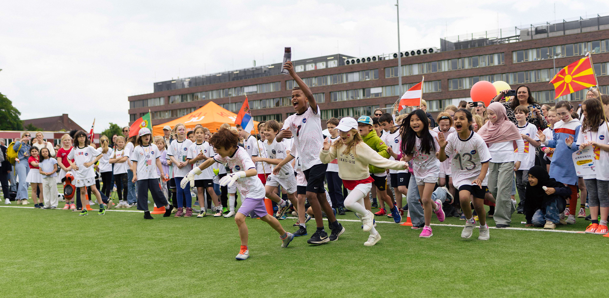 Insgesamt 3.398 Schülerinnen und Schüler hatten in den vergangenen Wochen um den Einzug ins Finale gekämpft. In der Nachmittagsbetreuung aller Ganztagsschulen, die von der ETV KiJu betreut werden, wurden Mannschaften aufgestellt und ihnen europäischen Ländern zugelost. Neben sportlichen Fähigkeiten lernen die Kinder auch viele wissenswerte Dinge über ihr jeweiliges Land. In selbst gestalteten Trikots wurden dann die Vorrundenspiele ausgetragen. An Tag eins gewann Griechenland das EM-Finale, bzw. die Klasse 1d der Schule Humboldtstraße und Klasse 2d der Schule Döhrnstraße. An Tag zwei siegten Italien (Vorschulklasse c der Schule Döhrnstraße), Österreich mit der Klasse 3e der Schule Humboldtstraße und Georgien mit der Klasse 4b der Schule Döhrnstraße.
